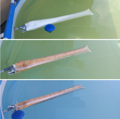 De zak vangt zelfs de kleinste verontreinigingen op, inclusief groenalgen.